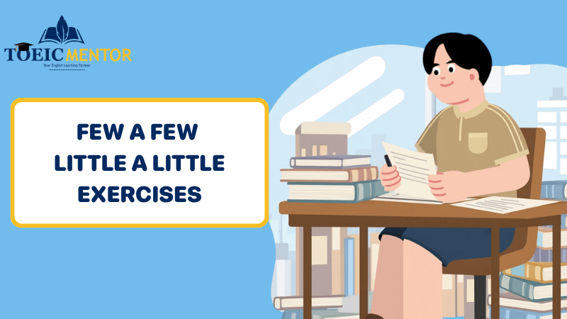 หลายคนสับสนระหว่าง few, a few, little และ a little เพราะหน้าตาคล้ายกัน แต่ความหมายต่างกันสุดขั้ว บทความนี้รวม few a few little a little แบบฝึกหัด ครบทั้ง 3 ระดับ พร้อมเฉลยและคำอธิบายเหตุผลทุกข้อ อ่านจบแล้วทำได้เลย